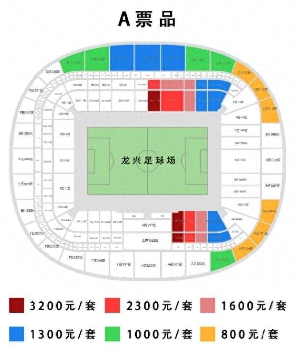 龍興足球場套票分爲6檔,分別爲800元、1000元、1300元、1600元、2300元、3200元。