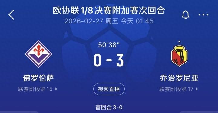 02月27日訊 歐協聯1/8決賽附加賽次回合,佛羅倫薩對陣喬治羅尼亞。