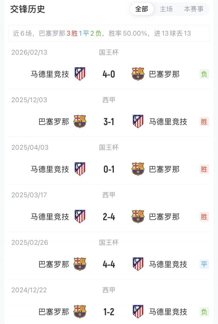 巴薩首回合0-4慘敗馬競,去年的聯賽交手則是3-1取勝。兩隊去年國王杯也是半決賽對決,巴薩兩回合4-4、1-0晉級。
