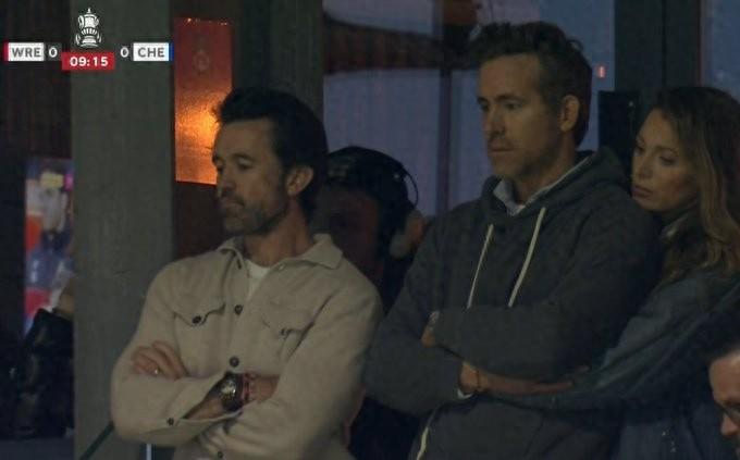 03月08日訊 足總盃1/8決賽,切爾西客場對陣雷克瑟姆,雷克瑟姆的老闆“死侍”瑞安·雷諾茲、羅伯·麥克艾亨利現場觀戰。