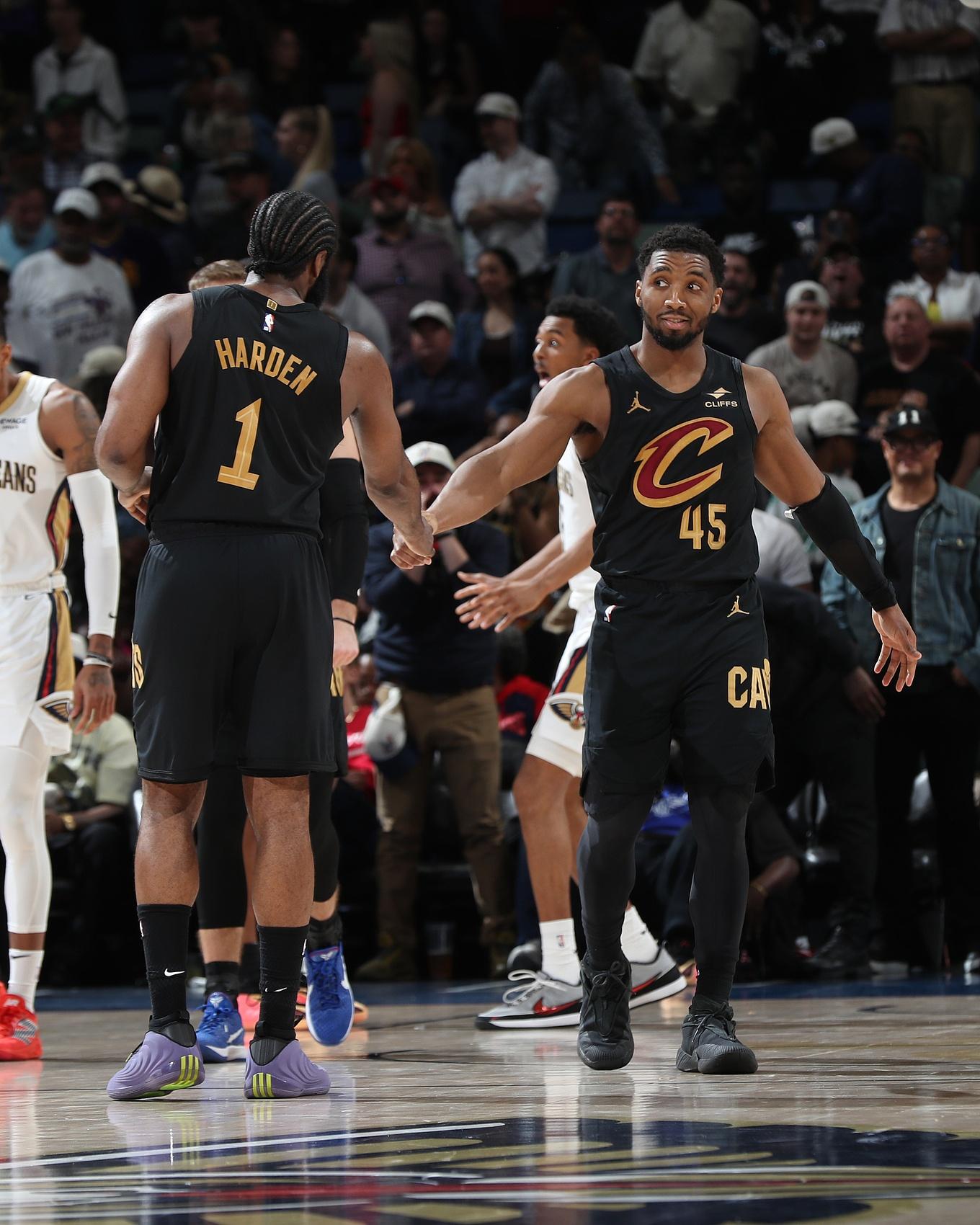 米切爾和哈登包攬了球隊第四節35分中的25分。他們還助攻了其他4個進球,這也意味着騎士的超級巨星雙人組包辦了球隊的每一個運動戰進球和每一分。