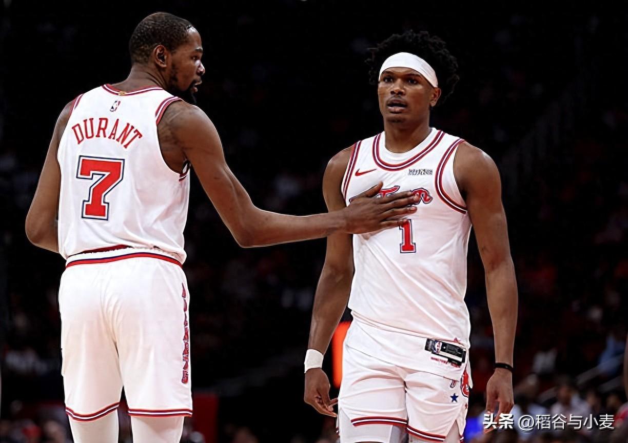 本場比賽中,火箭的先發鋒線球星凱文-杜蘭特(Kevin Durant)的表現還是相當不錯的。杜蘭特全場出場39分18秒,投籃16中7,三分線外6中2,罰球4中3,得到了19分5籃板9助攻1蓋帽的數據,還有2次失誤和2次犯規,正負值爲+6。杜蘭特在進攻端保持了穩定的水準,展現出了自己不俗的得分能力,也沒有進行太多的出手,在傳球和組織方面的表現也是不錯的。最關鍵的是,即使是面對對手的包夾,杜蘭特也顯得相當遊刃有餘,也沒有出現太多的失誤,而且他在防守端也算是保持了尚可的水準。總體來看,杜蘭特在本場比賽中整體表現還是值得肯定的,他也是爲球隊的勝利做出了不小的貢獻。