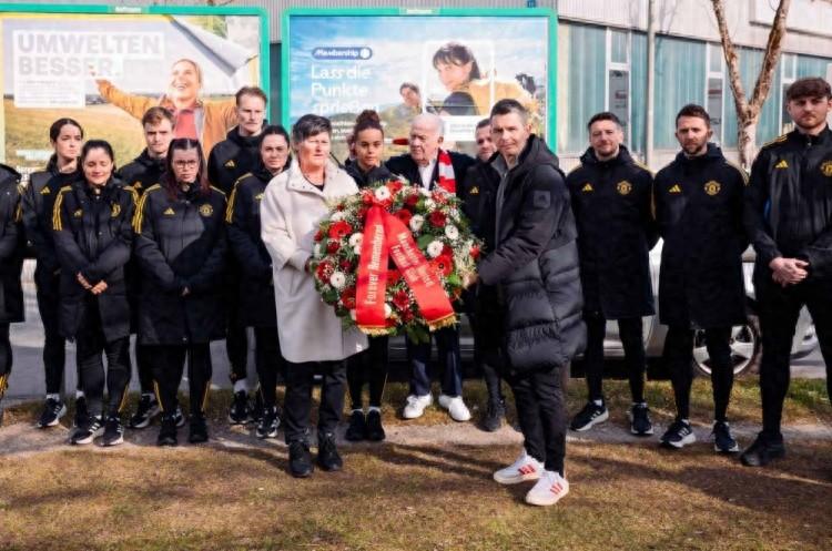 週四上午,曼聯女足的工作人員和球員們前往慕尼黑空難遺址,向1958年2月6日在慕尼黑空難中遇難的人們表示哀悼。這場災難奪去了23人的生命,其中包括8名曼聯球員和3名俱樂部官員,當時球隊的飛機在第三次嘗試起飛時墜毀。