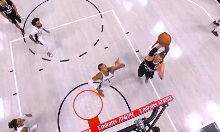 從容不迫!約基奇轉身關鍵拋射 球剛越過文班手指尖掉入籃筐!