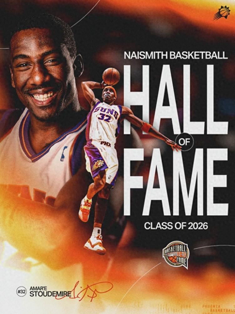 太陽官方曬出海報並送上祝福:“奈史密斯籃球名人堂的最新成員!恭喜阿瑪雷,入選2026屆名人堂!”