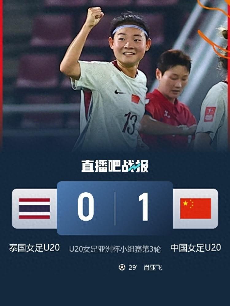 下半場比賽,雙方你來我往更多的是球權爭奪,都沒有創造出更好的得分機會,比分也沒有改寫,最終中國U20女足1-0取得勝利,以3場比賽全勝、未失一球的戰績,獲得小組頭名,泰國U20女足2勝1負排名小組第2,和中國U20女足一起小組出線進入8強。