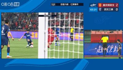 比賽第61分鐘,杜月徵犯規剷倒熊繼政,主裁第一時間出示黃牌,隨後VAR介入,主裁去場邊看過後改判直紅!銅梁龍十人作戰。