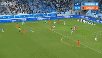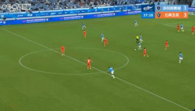 04月12日訊 中超第5輪,深圳新鵬城vs雲南玉昆,比賽第38分鐘,新鵬城後場發動快速反擊,韋斯利斜塞,卡爾採夫抽射破門,新鵬城扳回一球暫1-3落後。
