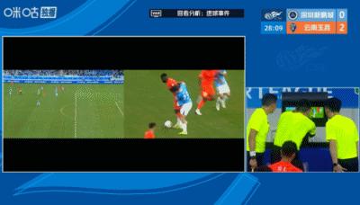 04月12日訊 中超第5輪,深圳新鵬城vs雲南玉昆,比賽第26分鐘,卡約胸部停球,約尼查直塞,前者小角度推射破門,裁判在場邊看完VAR後判定進球有效,玉昆2-0領先新鵬城。