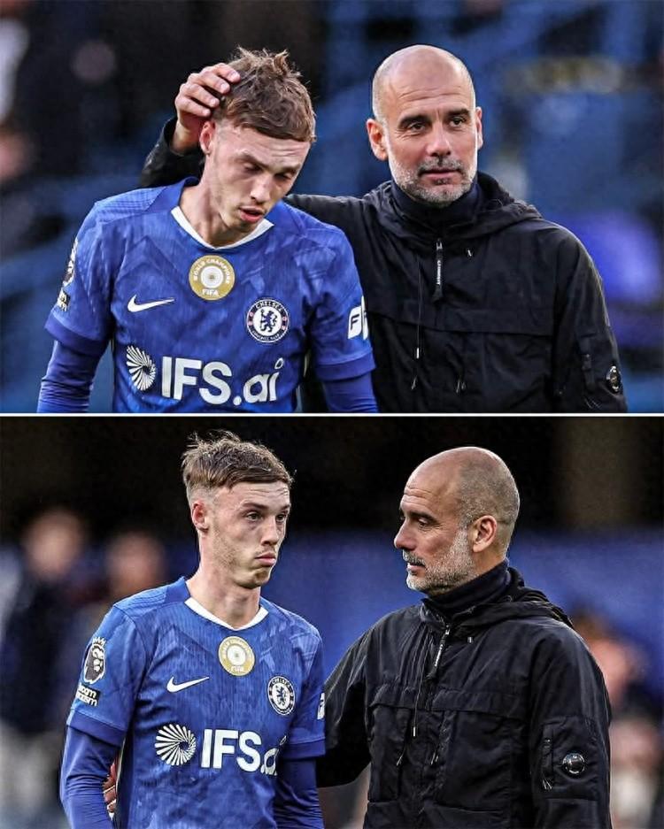 賽後,曼城主帥瓜迪奧拉和帕爾默進行了親密交流,他看起來安慰了失落的英格蘭人。