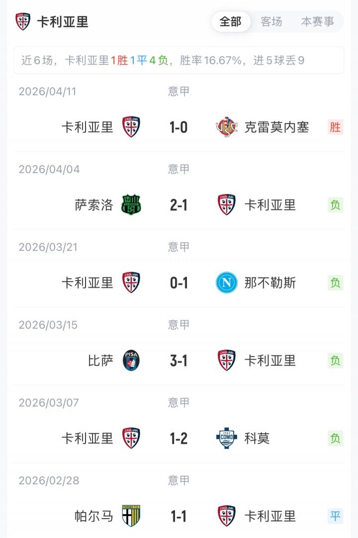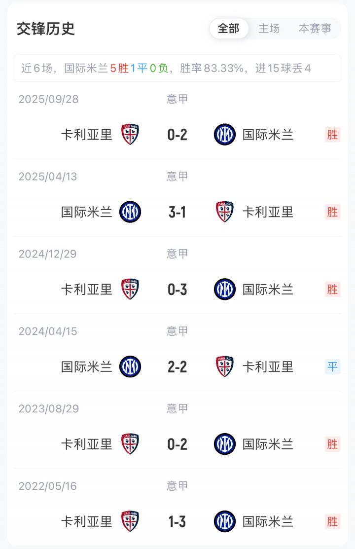 卡利亞里先發:1-卡普里萊、15-胡安·羅德里格斯、26-米納、32-澤·佩德羅、33-奧伯特、2-帕萊斯特拉、8-阿多博、10-蓋塔諾、25-蘇勒曼、29-博雷利、94-S·埃斯波西託