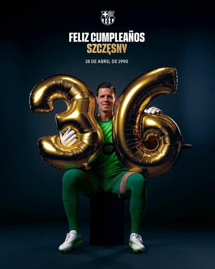4月18日訊 巴薩官方曬海報,祝賀什琴斯尼36歲生日。