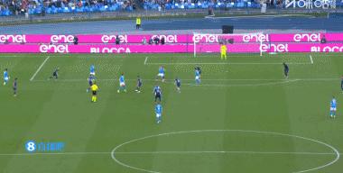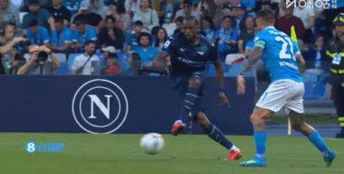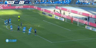 第6分鐘,泰勒左路套邊下底低平球傳中,坎塞利耶裏推射破門,那不勒斯0-1拉齊奧。↓