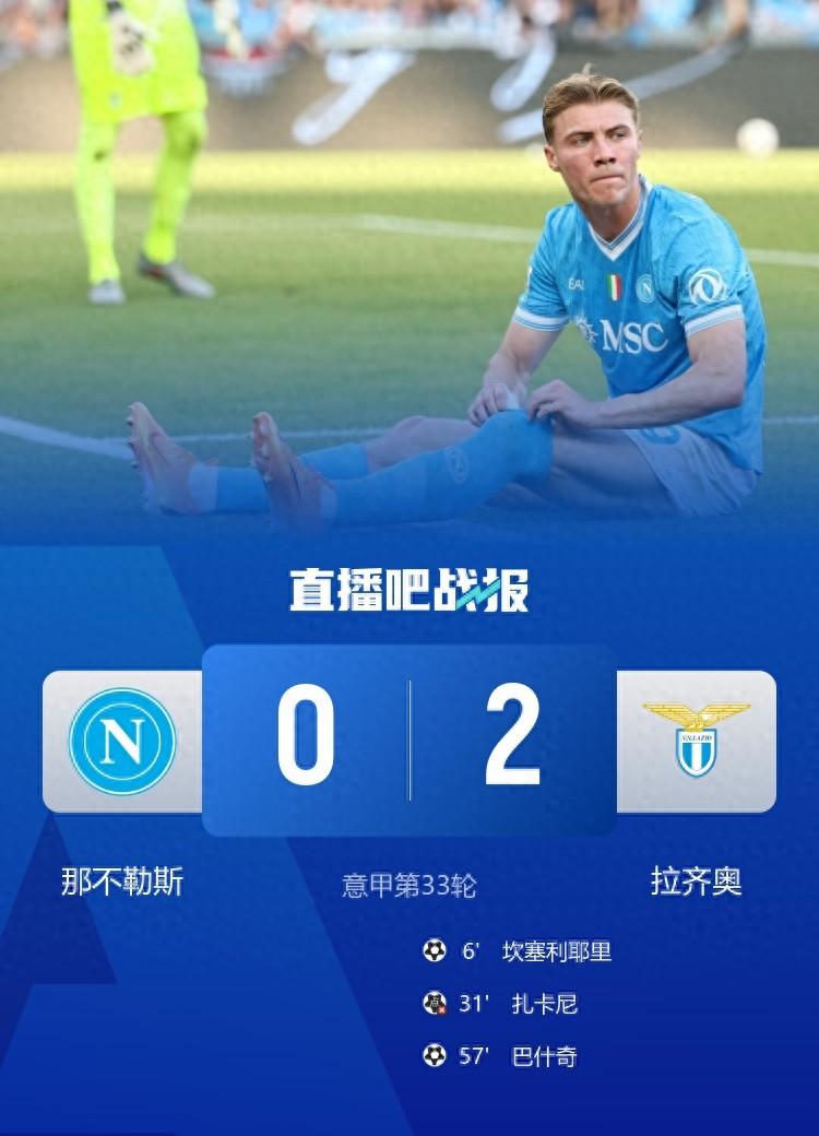 4月19日訊 北京時間4月19日0:00,2025/26賽季意甲第33輪,那不勒斯在馬拉多納球場迎戰拉齊奧。上半場,坎塞利耶裏搶點破門先下一城,扎卡尼點球宴客;下半場,巴什奇勁射破門。最終那不勒斯以0-2不敵拉齊奧。積分榜方面,那不勒斯積66分排在第二,拉齊奧積47分排在第九。