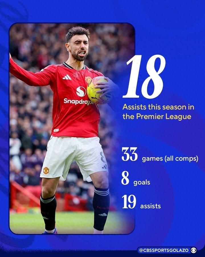 這也是B費本賽季在英超的第18次助攻,距離亨利(阿森納,02-03賽季)和德布勞內(曼城,19-20賽季)保持的英超單賽季20次助攻紀錄已相距不遠。