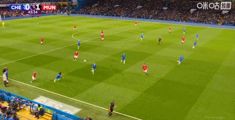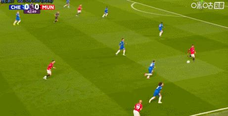 第43分鐘,B費右路得球下底,隨後倒三角傳球,跟進的庫尼亞一腳打門攻破羅伯特·桑切斯十指關,曼聯1-0切爾西。↓