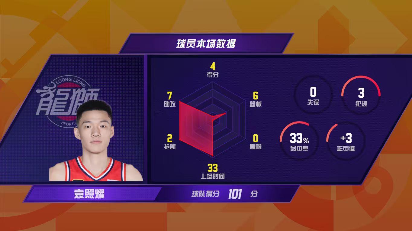 4月20日,常規賽第41輪,廣州朗肽海本101-94戰勝福建晉江文旅,繼續向季後賽發起衝擊。廣州男籃隊長劉顏誠得到職業生涯最高分27分,袁照耀送出生涯新高的7次助攻。