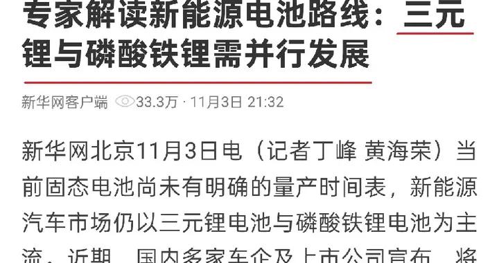 動力電池領域的技術路線之爭終於迎來理性聲音,三元鋰與磷酸鐵鋰並非你死我活,而是互補共生的兄弟關係。近日,新華網發佈的一篇報道引發行業廣泛關注。針對新能源電池領域的技術路線之爭,國內新能源電池領域專家、行業協會負責人及企業研發人員普遍認爲,三元鋰與磷酸鐵鋰兩條技術路線各具優勢、各有適用場景...