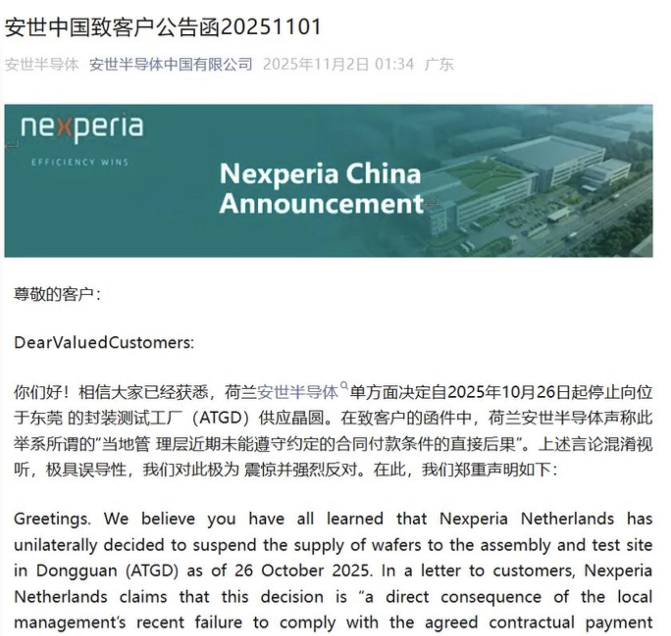 這還沒完,糊塗的荷蘭,甚至還倒打一耙,以“不遵守付款條約”的理由,再對中國實施斷供晶圓。然而,荷蘭的“遮羞布”立刻被撕碎,安世中國直接甩出證據——誰每付款,誰知道。