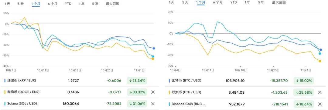 圖丨主要加密貨幣近一個月以來的趨勢(來源:谷歌財經)