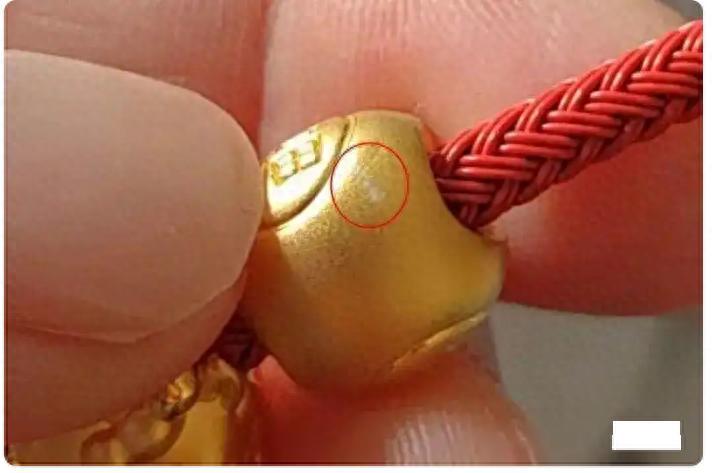 近日,廣東清遠的李女士怎麼也沒想到,剛買的周生生足金福袋掛墜,戴了一天就刮花,還冒出白色痕跡。找門店溝通,對方說是佩戴不當,只願修復不願退貨。心存疑慮的她把掛墜送去檢測,結果讓人心驚:不同點位的金含量從64.37%到99.99%不等,最大差值超35%,還檢出了鐵、銀、鈀等金屬。
