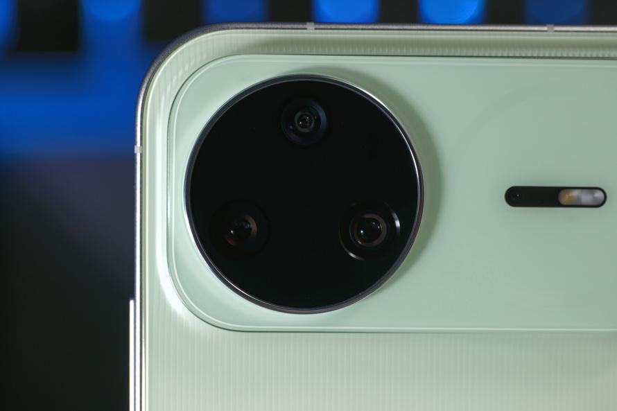 而在前置攝像頭上,採用了150萬多光譜通道紅楓原色鏡頭(F2.4光圈)+5000萬像素超聚光人像鏡頭配置,後者搭載的是1/2.5英寸CMOS傳感器,支持QPD全像素精準對焦以及0.8-5X變焦。