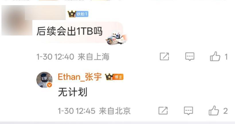 怎麼回事呢?原來在發佈之前,紅米手機並沒有宣佈紅米Turbo 5 Max將有1TB的任何消息,在網友提問,後續會出1TB版本嗎?小米產品經理張宇給出的答覆是無計劃!