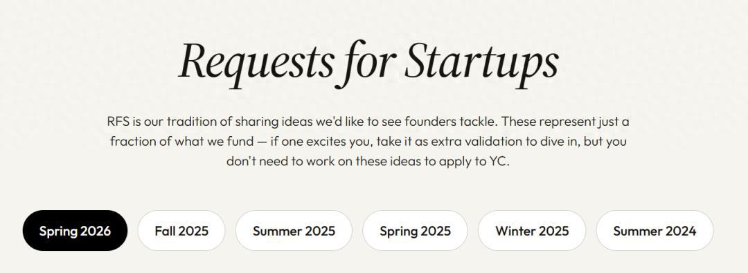 近日,硅谷知名創業孵化器 Y Combinator 發佈了 2026 年春季創業賽道指南(RFS)。作爲全球最具影響力的創業加速器,這一傳統旨在讓創業者窺見 YC 希望他們解決的下一代問題。