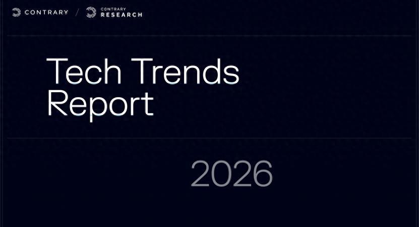 每年年初,Contrary Research 都會發布一份年度技術趨勢報告。2025 年 1 月發佈的首期報告獲得了不錯的行業關注度。如今,他們的 2026 年版 Tech Trends Report 已經出爐,篇幅超過 350 頁,涵蓋五大板塊、數十個子議題,從 AI 基礎模型到月球基地,從 GLP-1 藥物到全球衝突態勢,試圖用一份文件勾勒出當下科技世界的全景圖。