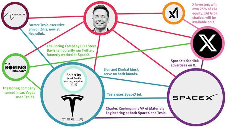 不久前,特斯拉已經對xAI進行了投資,而SpaceX收購了xAI。外界推測,馬斯克旗下所有公司未來會逐步走向協同融合,成爲統一的龐大生態企業。