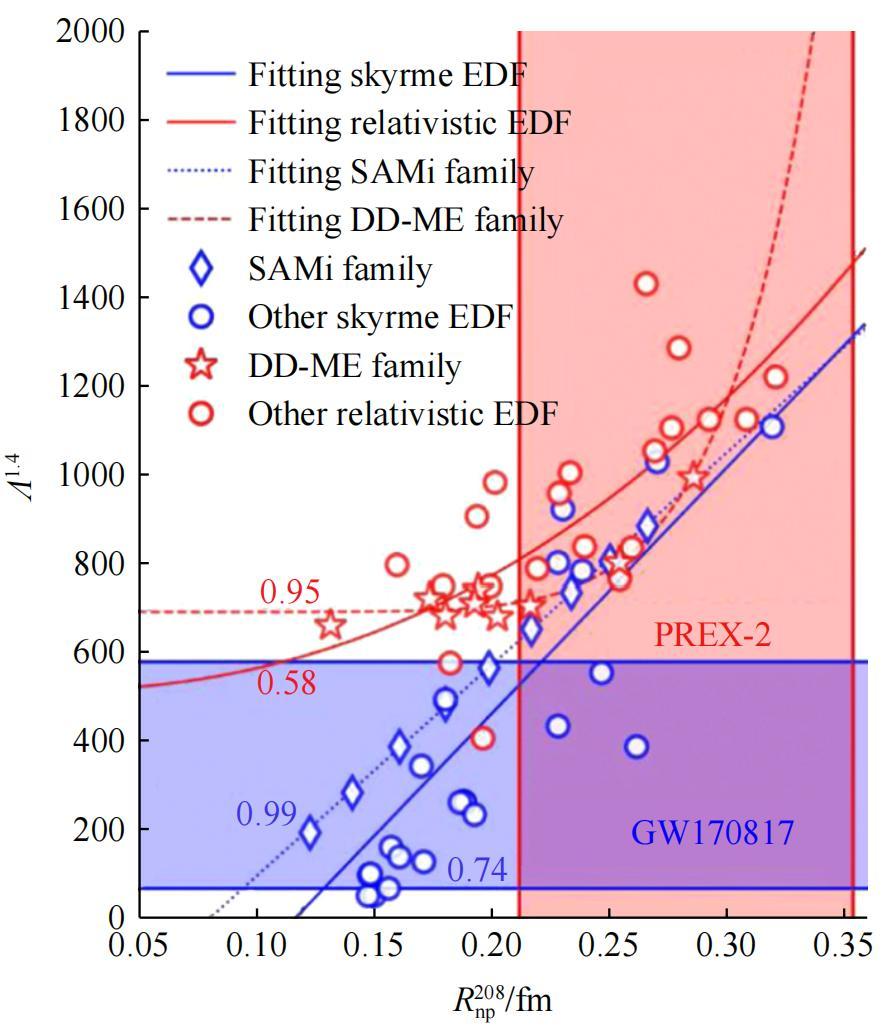 蘭州大學研究團隊研究了從GW170817推斷的潮汐極化率Λ1.4和由PREX−2測量的208Pb中子皮厚度
