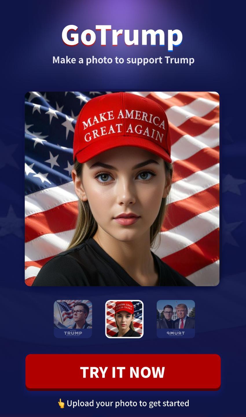 這個需求的判斷並不是憑空而來。2024 年美國大選期間,創始人張威曾做過一個名爲 GoTrump 的網頁項目:在特朗普競選的支持活動中,爲其支持者生成定製頭像和視覺素材。果不其然,產品受到了許多特朗普粉絲的歡迎,他們紛紛把生成的圖片發到了社交媒體上並且換上了 AI 生成的專屬頭像。