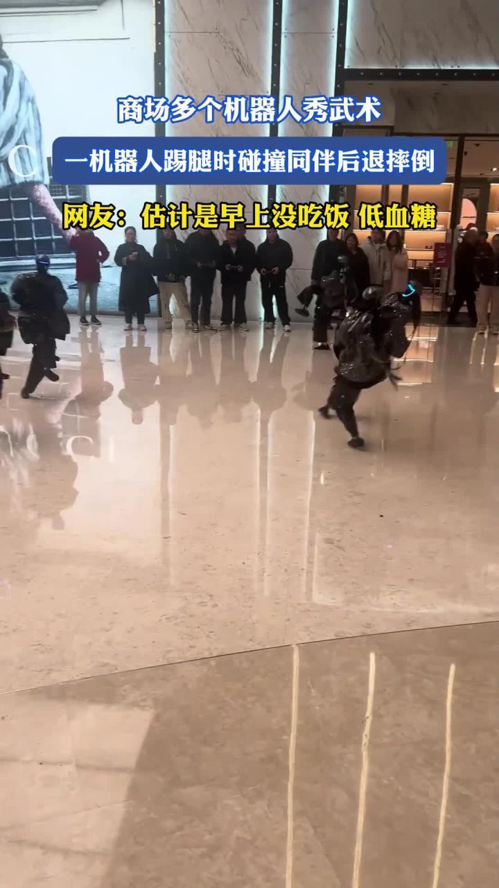 近日,在浙江寧波的一個商場裏,幾個機器人穿着亮片衣服表演武術,結果一個迴旋踢動作沒整明白,直接把旁邊的同伴給踹倒了。那個被踢中的機器人當時就懵了,邁着小碎步往後退,最後還是沒挺住,摔在地上。本來就是個挺滑稽的翻車現場,後面發生的事卻讓在場的人都笑不出來了。