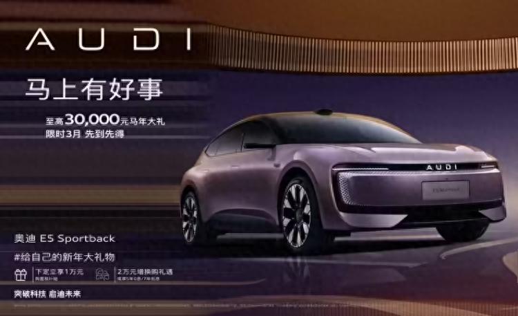 奧迪這兩天放了個大招。2月25號,上汽奧迪發佈奧迪E5 Sportback限時優惠,即日起到3月31號,權益價起售價拉到20.59萬元。