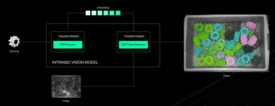 2025 年 10 月 27 日,Intrinsic 正式發佈其工業級感知基礎模型 Intrinsic Vision Model(IVM),這也是公司繼 Flowstate 之後在 AI 視覺領域的最大突破。它被定位爲“Intrinsic Intelligence”的一部分,直接嵌入 Flowstate 平臺,讓開發者能像搭積木一樣調用最先進的視覺能力,極大降低了工業機器人對高精度感知的門檻。