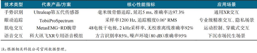 交互技術是XR實現“虛實融合”的核心橋樑,其精準度與自然度直接決定工業、醫療等場景的應用落地成效。2025年,XR交互技術從傳統“控制器依賴”模式,轉向“手勢−眼動−肌電−語音”多模態融合形態,通過單模態性能突破與跨模態協同優化,破解傳統交互操作複雜、延遲偏高、場景適配性不足等行業痛點,實現“自然化操控+精準化響應”的雙重目標。