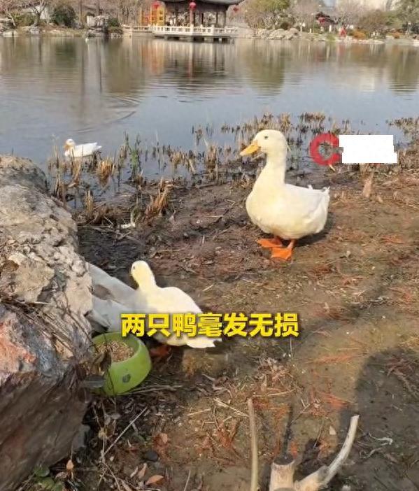 劉女士的解釋是,過年一家四口自駕回老家,帶了兩狗一貓,兩隻鴨子實在裝不下了。裝不下怎麼辦?思來想去,決定放在附近的公園。因爲公園有食物,它們平時也常去那兒遛寵物。