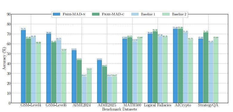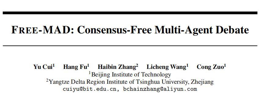 1.Yu Cui, Hang Fu, Haibin Zhang, Licheng Wang, Cong Zuo, Free-MAD: Consensus-free multi-agent debate, arXiv preprint arXiv:2509.11035