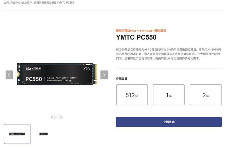 近日,長江存儲正式面向商用消費級市場推出PCIe 5.0 NVMe SSD產品——PC550。該產品使用長江存儲自研晶棧Xtacking 4.0架構技術,在實現高性能讀寫性能的同時,配以優秀的功耗與溫控表現,可解決長期以來PCIe 5.0 SSD因發熱過高難以在PC OEM市場普及的核心痛點。
