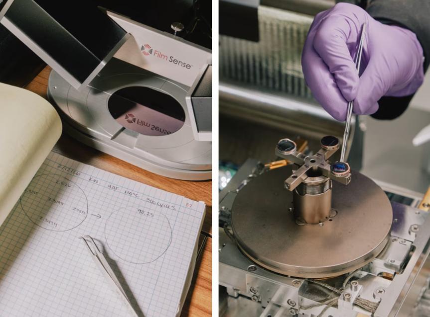 但問題是怎麼把它塗到硅片上,還得塗得足夠薄。傳統辦法是把材料溶解了旋塗上去,但是金屬有機框架不太容易溶得那麼好。於是,Waltz 等人使用了另一招:原子層沉積。一層一層往上長,厚度可以控制在 20 納米以下,比一根頭髮絲還細了幾千倍。