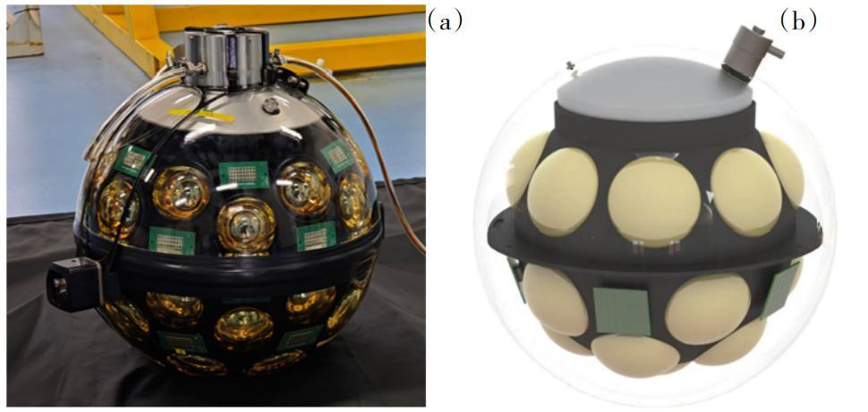 圖8 海鈴 3 英寸 hDOM 實物(a)及優化後的4 英寸 hDOM 設計圖(b)