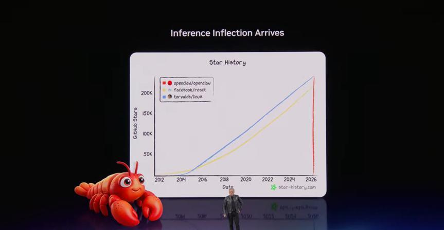 “人們在深圳排隊買龍蝦,每個人都在談論 OpenClaw。”這個在中國深圳發生的真實場景,被他用來證明 OpenClaw 已經成爲人類歷史上最受歡迎的開源項目,它在幾周內就超過了 Linux 三十年的成就。