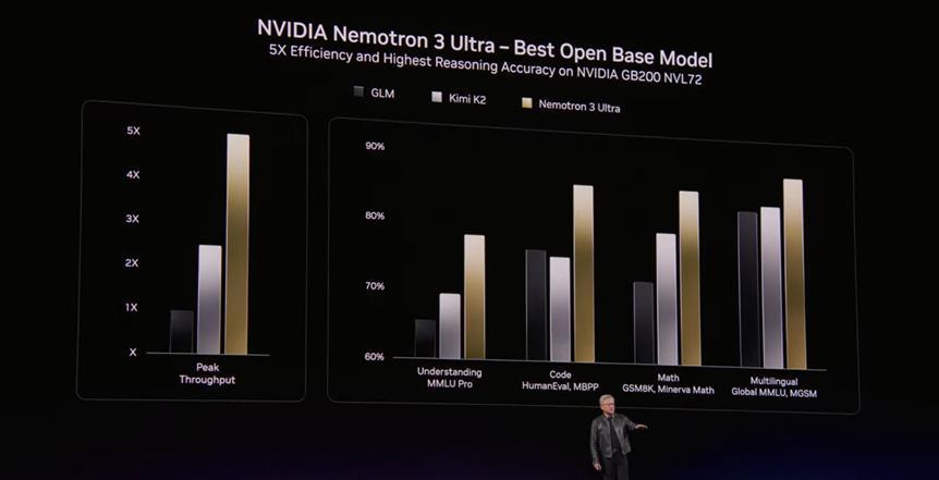 ·Nemo Tron 推理模型用於語言和視覺理解,黃仁勳表示 Nemo Tron 3 Ultra 將成爲有史以來最好的基礎模型。