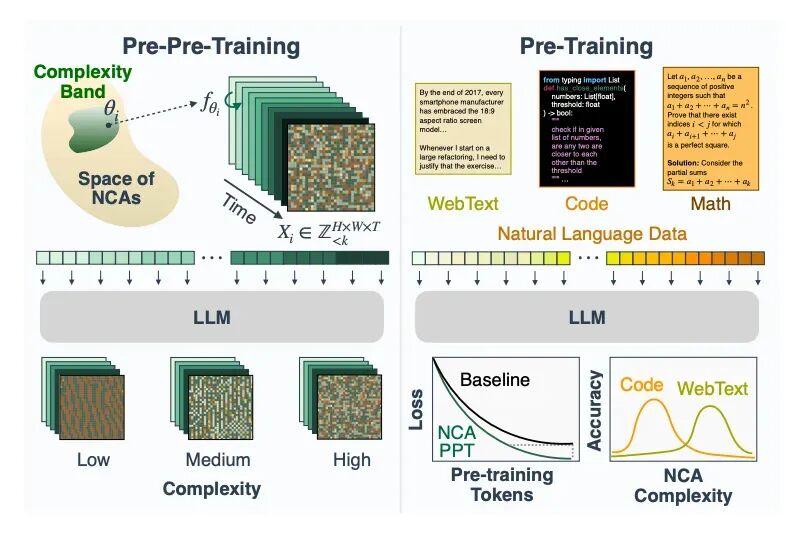 圖丨NCA 預預訓練到語言預訓練的概覽(來源:arXiv)