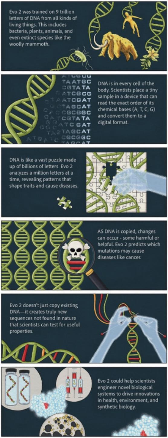 繼2008年人類首次化學合成生殖支原體基因組後,合成生物學領域今日迎來了一項被譽爲“ChatGPT時刻”的範式突破。由Arc研究所、斯坦福大學、NVIDIA及加州大學伯克利分校等機構聯合研發的生物基礎模型——Evo2正式對外公佈。該模型基於9萬億個DNA鹼基對訓練而成,不僅能夠高精度預測基因突變的致病性,更實現了從頭設計長達百萬鹼基對的複雜基因組序列,標誌着生命代碼的操縱從“微調編輯”正式跨入“生成式編程”時代。2026年3月4日,相關研究成果發表於Nature。