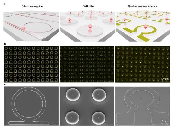 該方法不僅適用於納米金剛石,研究人員還在硅波導、氮化鎵微柱、金質天線三種異質平臺成功集成,驗證了技術的普適性。從理論來看,該技術有望擴展至 12 英寸商用硅晶圓。