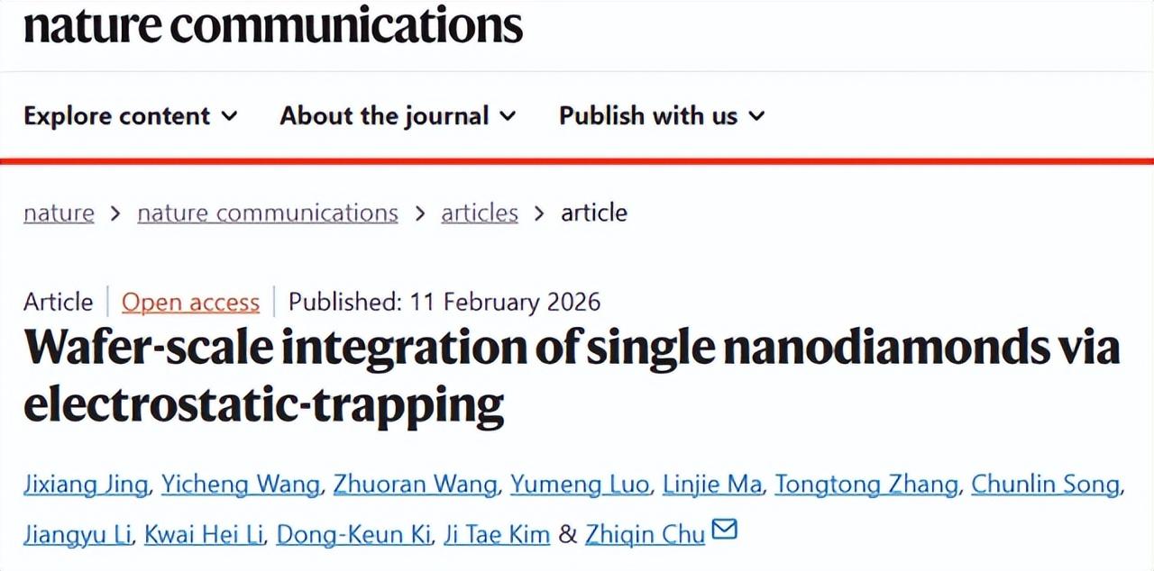 相關論文以《基於靜電捕獲技術的單顆納米金剛石晶圓級集成》(Wafer-scale integration of single nanodiamonds via electrostatic-trapping)爲題發表在 Nature Communications[1]。香港大學博士後景紀祥和博士生王奕程是論文共同第一作者,褚智勤教授擔任通訊作者。