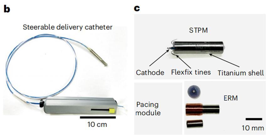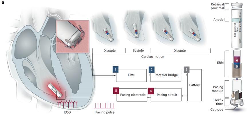 第一,它是一個完整的、全植入式的設備,能量採集和起搏電路都集成在同一個鈦殼裏,符合現有的介入手術指南。之前的很多研究只是在手術中臨時驗證一下發電效果,並沒有真正用發的電來驅動起搏器治療疾病。