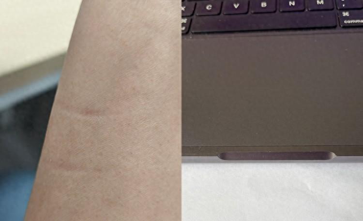 網友曬自己被MacBook壓到的手臂及最割人的部位