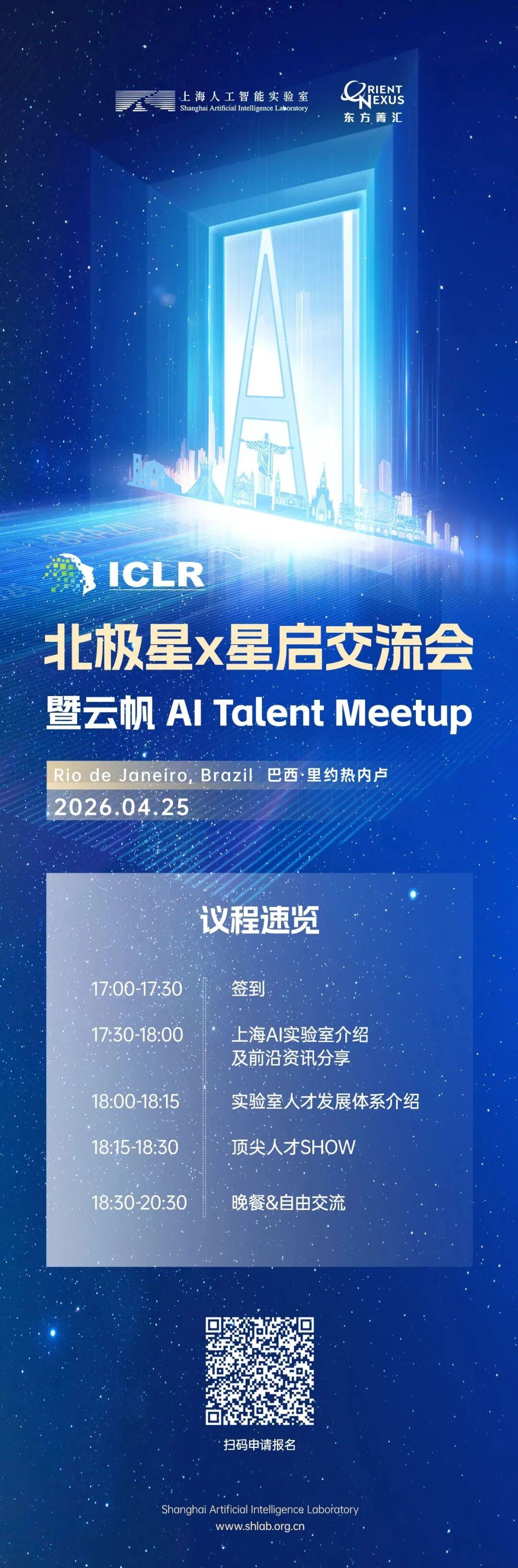 同期,上海人工智能實驗室(上海 AI 實驗室)將於 4 月 25 日 17:30-20:30(里約熱內盧時間)舉辦“北極星 X 星啓交流會暨雲帆 AI Talent Meetup”,直面全球同行,搭建學術與產業對話橋樑。截至目前,“北極星交流會”已在中國、美國、新加坡、加拿大等地成功舉辦多場,爲數千名 AI 英才連接全球機遇。